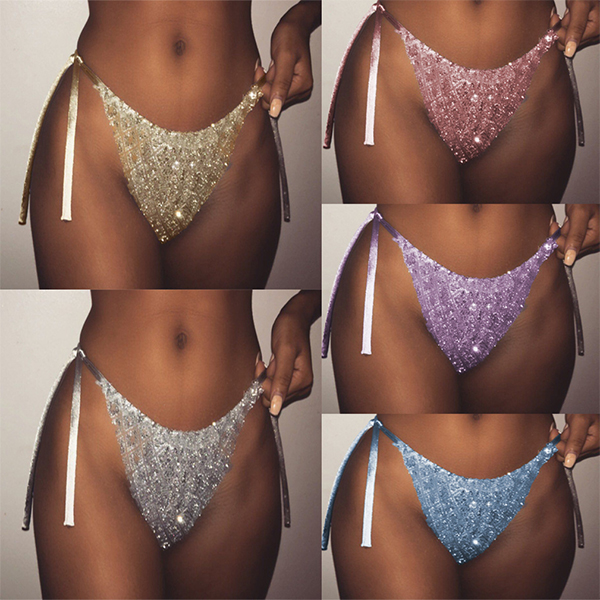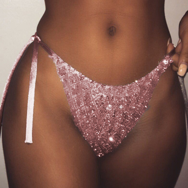 Easy to make a splash on the beach or pool with this bikini bottom. Its lace-up low-waist and sequin spliced design makes