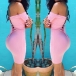 Sexy Lace-Up Off-The-Shoulder Short-Sleeved Solid Color Bodycon Mini Dress