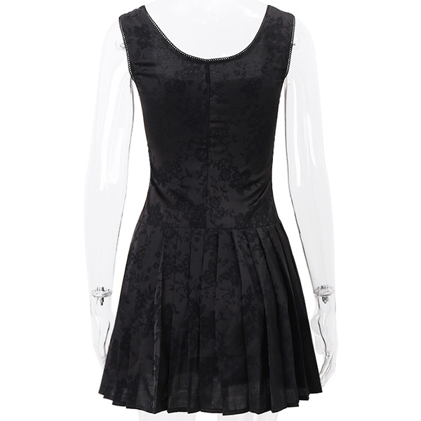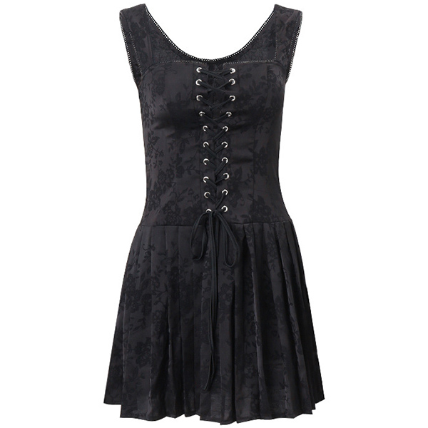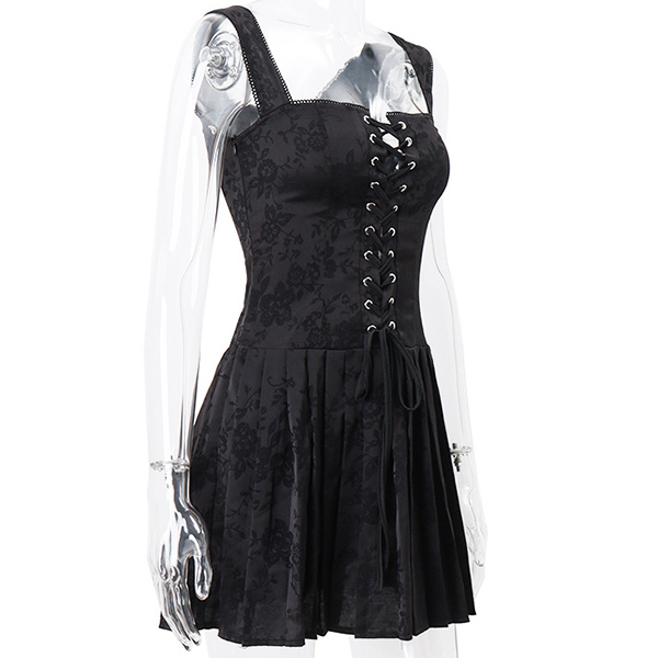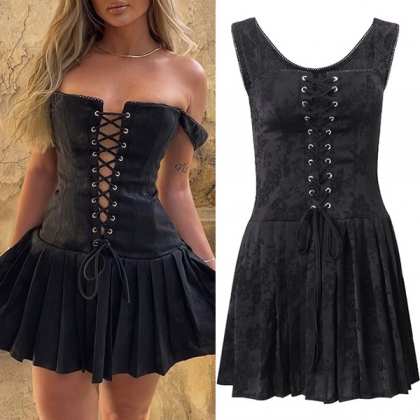 Sexy Lace-up Square Neck Sleeveless Ruffled Hemline Mini Dress
