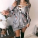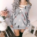 For your autumn days,this sweatshirt can be your perfect choice. The feather printed pattern design makes this piece look so playful yet eye-catching. Moreover,the lace-up v-neck design will exude some sassy and flirty vibes. When you wanna look more charming,you can try to match with your over-the-knee boots.