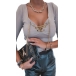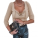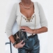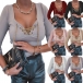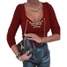 Sexy Lace-up V-neck Long Sleeve Solid Color Slim Fit T-shirt