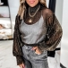 Sexy Lantern Sleeve Mock Neck See-through Gauze Smock