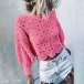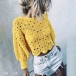 Sexy Lantern Sleeve Round Neck Hollow Out Crop Top