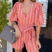 Sexy Lantern Sleeve V-neck Stripe Top + High Waist Shorts Two-piece Set