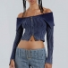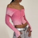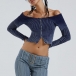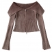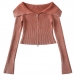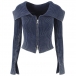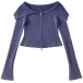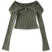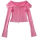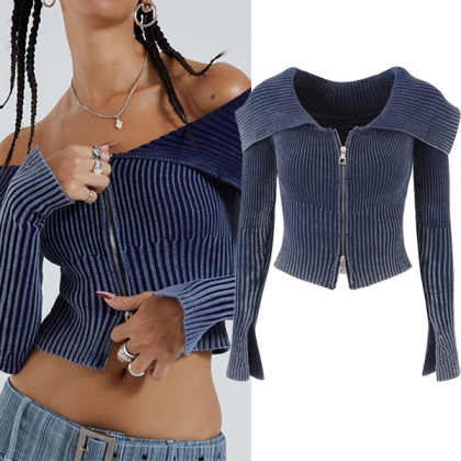 Sexy Lapel Collar Long Sleeve Front Zipper Ribbed Crop Shirt