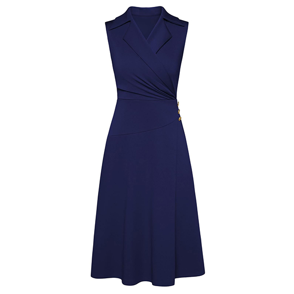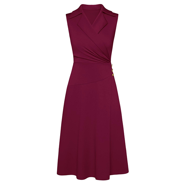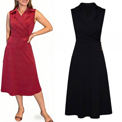 Sexy Lapel Collar V-neck Sleeveless Ruched Dress