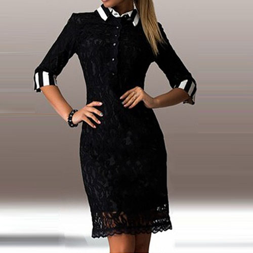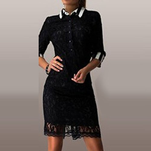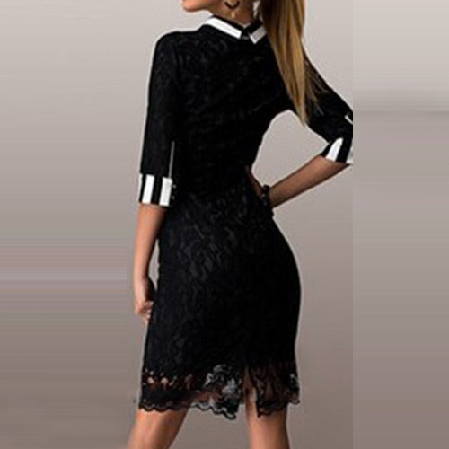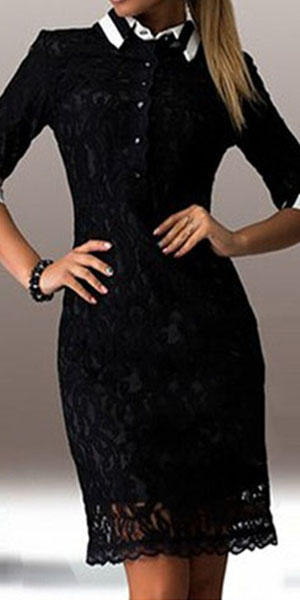 Complete your more beautiful and charming look with this lace dress. It is equipped with lapel,