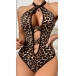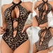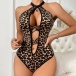 Sexy Leopard Print Criss-cross Heart Rhinestone Lingerie Bodysuit