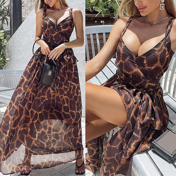 This is a must-have for every fashion-savvy woman! The leopard print is wild and sexy, while the maxi length is elegant and sophisticated. The dress is made of a lightweight, flowy fabric that is perfect for summer.