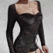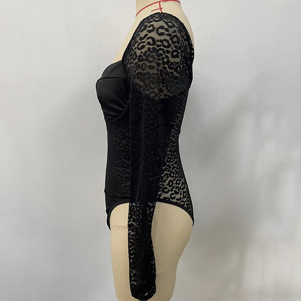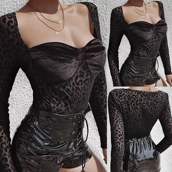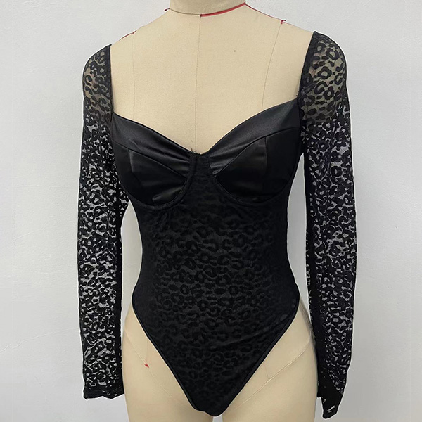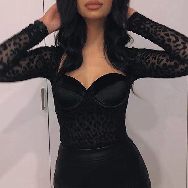 Sexy Leopard Print Sweetheart Neck Long Sleeve Bodysuit