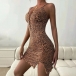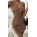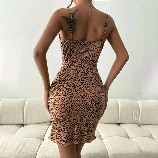 Sexy Leopard Printed Buttoned V-neck Backless Slip Dress