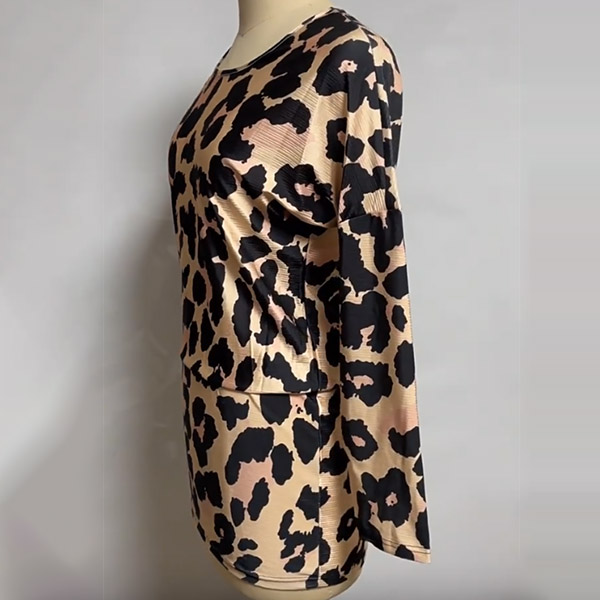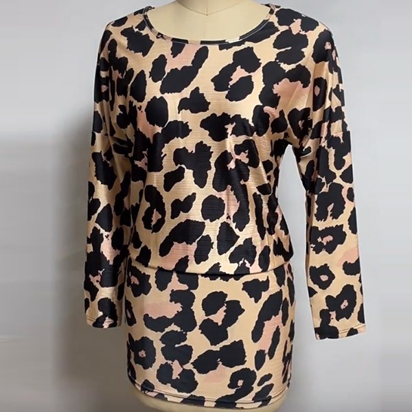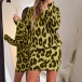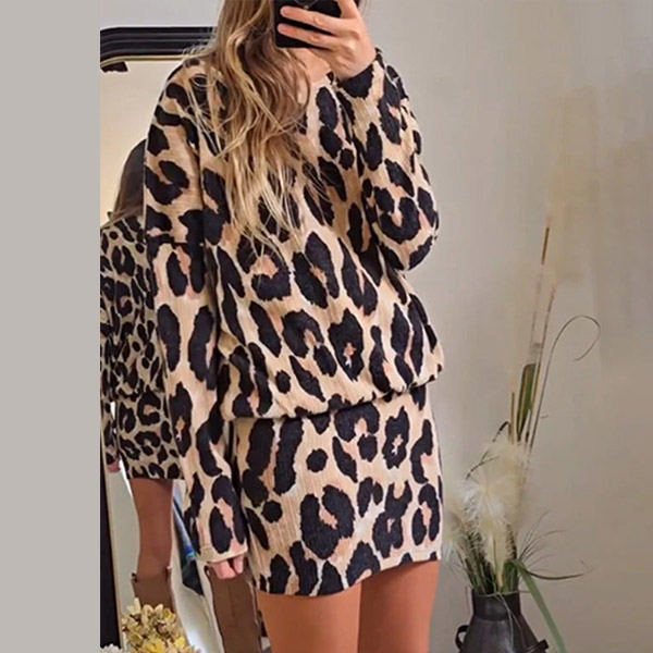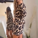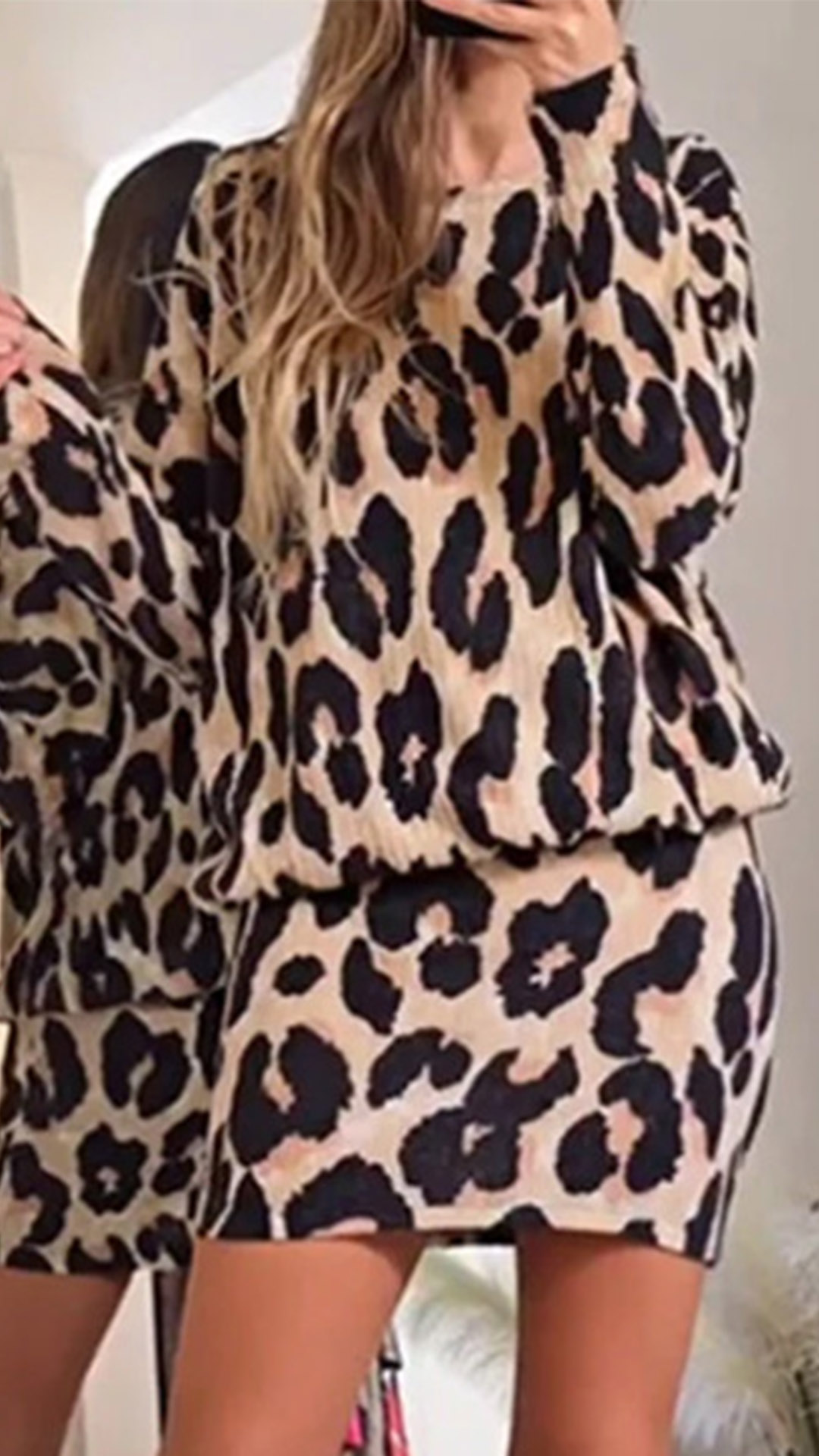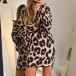 Sexy Leopard Printed Crew Neck Long Sleeve Mini Dress