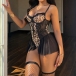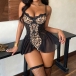 Sexy Leopard Printed Lace Spliced Gauze Front Lace-up Sweetheart Neckline Nightwear Dress