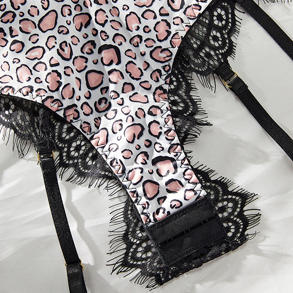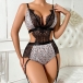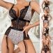 Sexy Leopard Printed Lace Spliced Lingerie Bodysuit