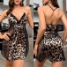 Sexy Leopard Printed Lace Spliced V-neck Chain Backless Pajamas Dress