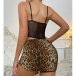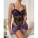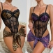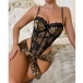 Sexy Leopard Printed Lace Sweetheart Neckline Lingerie Bodysuit with Self-tie Skirt
