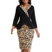 Sexy Leopard Printed Lapel V-neck 3/4-Sleeve Bodycon Dress
