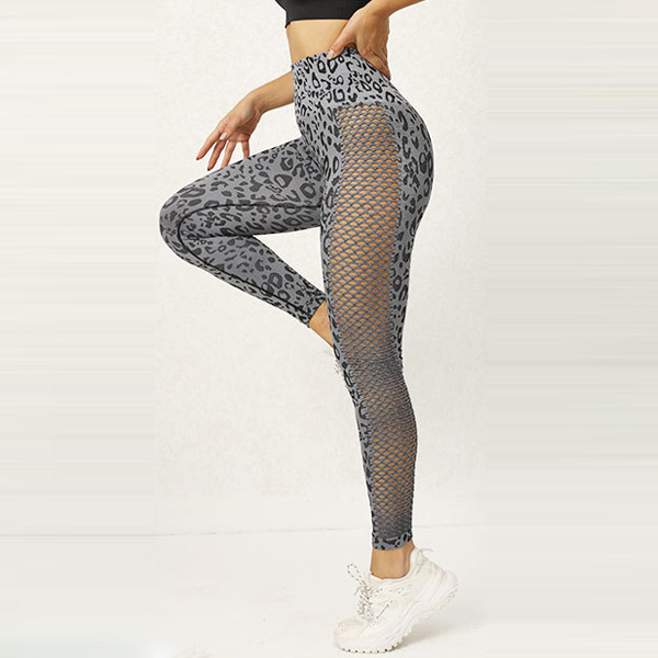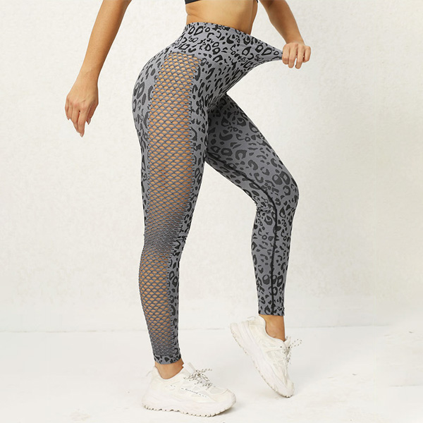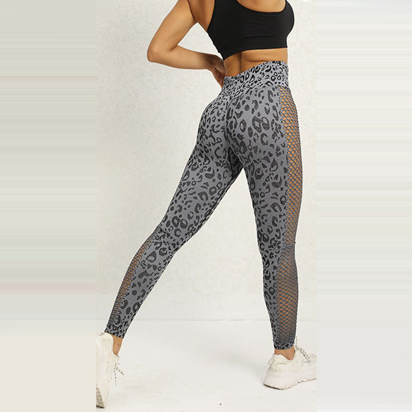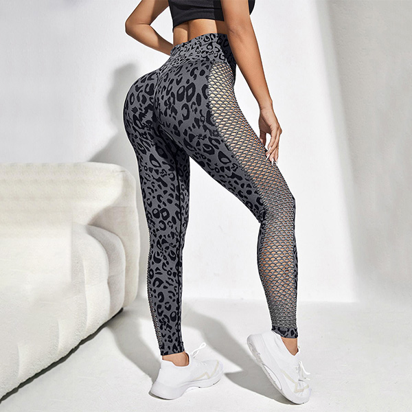 Sexy Leopard Printed Mesh Net Spliced High-rise Leggings for Sports
