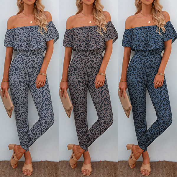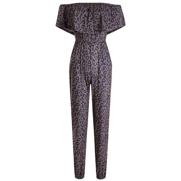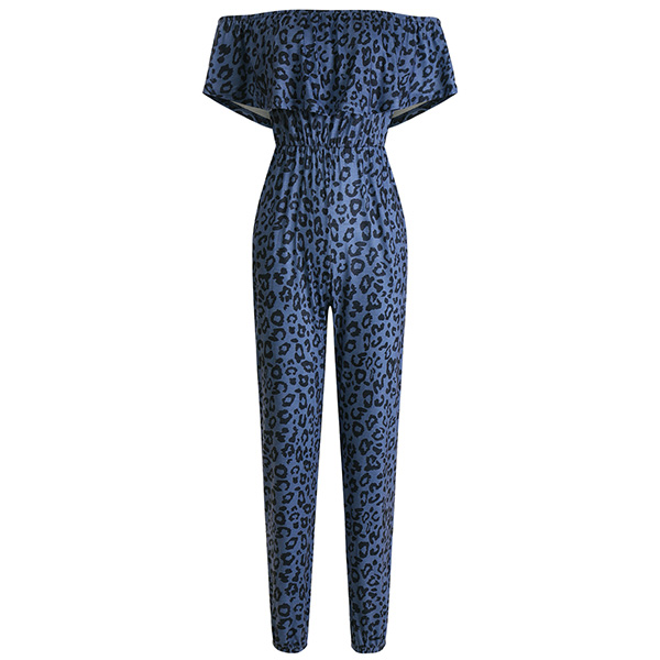 Sexy Leopard Printed Ruffle Strapless Jumpsuit