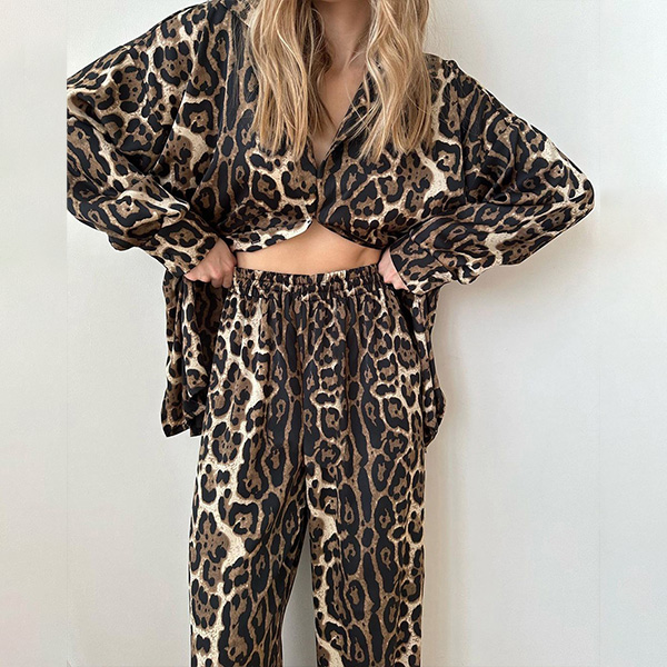 Stay stylish and comfortable all night long with this pajamas set! This two-piece set includes a top and matching bottoms, both featuring the eye-catching leopard print. Crafted with high-quality fabric, this pajama set offers a comfortable and cozy fit. The leopard print adds a playful and sexy element, creating visual interest and making a bold statement.