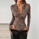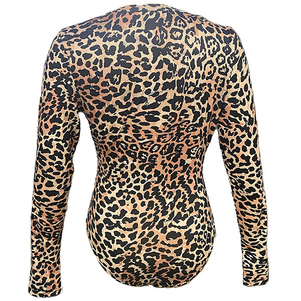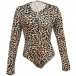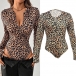 Sexy Leopard Printed V-neck Long Sleeve Bodysuit