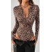 This bold and stylish bodysuit features a trendy leopard print that exudes confidence and attitude. The V-neckline adds a touch of allure, while the long sleeves provide coverage and a chic look. Pair it with high-waisted jeans or a skirt for a stylish and edgy look that will make you stand out from the crowd.