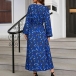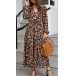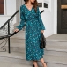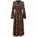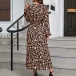 Sexy Leopard Printed V-neck Long Sleeve Slit Dress