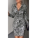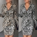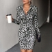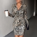 Sexy Leopard Printed Zipper V-neck Long Sleeve Bodycon Dress