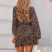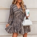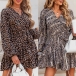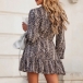 Sexy Leopard Printed/Snake Printed V-neck Long Sleeve Self-tie Waist Ruffle Hemline Dress