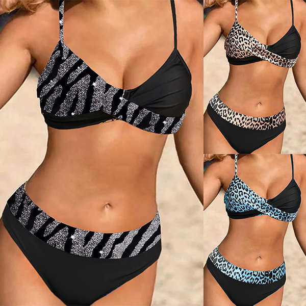 When the summer season hits,you can just head to the seaside to relax yourself. At this time,you need a cozy yet sexy bikini set. So how about this set? The leopard printed spliced details will make it look more eye-catching. Crafted from soft,breathable and quick-dry fabric,this bikini set can give you a long-lasting comfort.