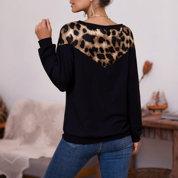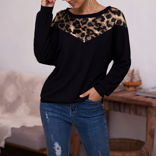This t-shirt that exudes cozy,chic and stylish vibes is worth to arouse your attention. The leopard spliced details and oblique shoulder design are the highlights,which make this piece full of style and charm. Meanwhile,its soft fabric can ensure you a comfortable day. A good choice for you in the spring and autumn days.