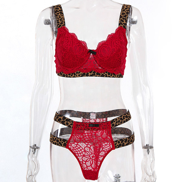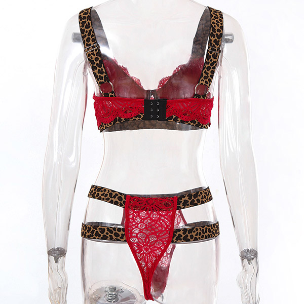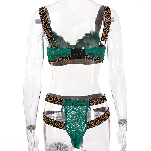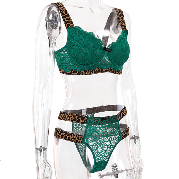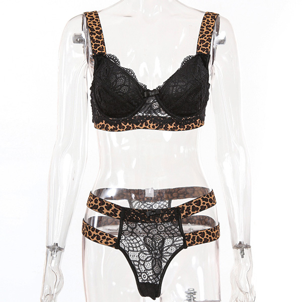Sexy Leopard Stripe Lace Two-piece Lingerie Set
