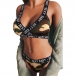 Combines of letters and camouflage printed details,which can make it look more eye-catching and charming. Including a backless push-up bra and a low-waist briefs,this lingerie set can better shape your seductive curve. It is a perfect choice for your romantic time with your lover.