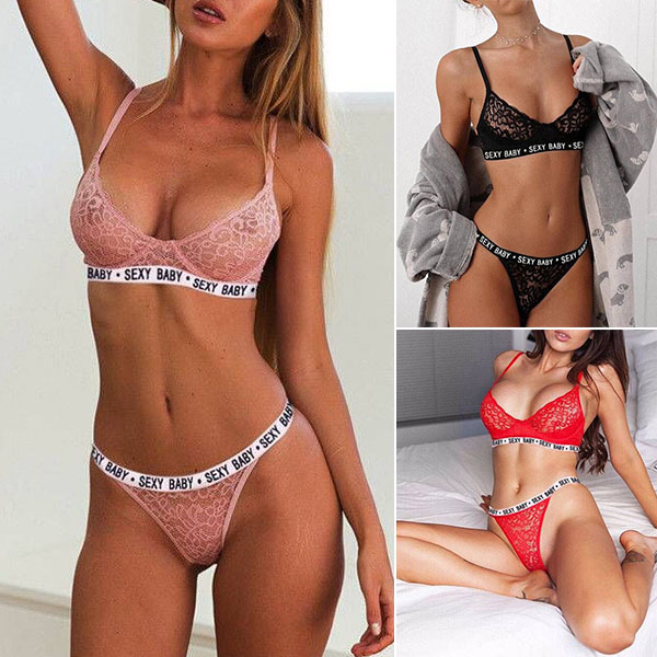 Combines of the lace element and letters printed details,this lingerie set is a good weapon to exude your sexy and alluring side. The super soft and breathable fabric can give you a long-lasting comfort. Including a lace bra and a briefs,this bra set also can shape your seductive curve.