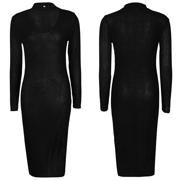 and flattering black color tone,accompanied with a choker v-neck,a slit hem and a super fit silhouette,this dress can perfectly
