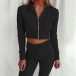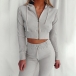 When you wanna flaunt off your sexy and seductive curve,you can just turn to this two-piece set for help. Solid color style,including a long sleeve hooded crop top and a high waist pants,its soft and breathable fabric can ensure you a comfortable day. For your sports time and casual weekends,this two-piece set can be a wise choice.