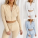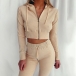 Sexy Long Sleeve Hooded Crop Top + Pants Two-piece Set