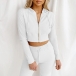 Autumn is a season for mixing and matching, which is a good time for girls dressing up. This simple but stylish set will strike your mind once it comes to your sight. Your charming waist line can showcase perfectly through its top. And the high quality and smooth zipper can make it look more advanced.Just slip into this two-piece set to start your wonderful day!