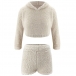Sexy Long Sleeve Hooded Plush Crop Top + Shorts Two-piece Set