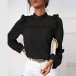 When you wanna exude your charming feminine appeal,you can just have a try this lace top. Solid color style,the ruffle design will lend you a dash of sweet vibes. Finished with long sleeve and mock neck design,this piece can offer you different fashion styles by teaming with different style bottoms.