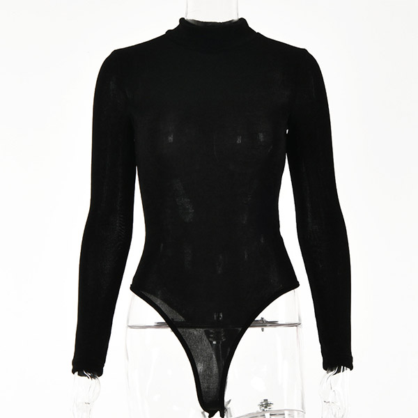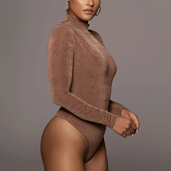 Sexy Long Sleeve Mock Neck Slim Fit Bodysuit