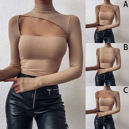 You can easily win more eyes when you don this little stunner. Solid color style,crafted form soft and breathable fabric,with long sleeve and mock neck design,this top can give you a long-lasting comfort. And the hollow out design will make this piece full of sexy and flirty vibes. So why not take interest in it?