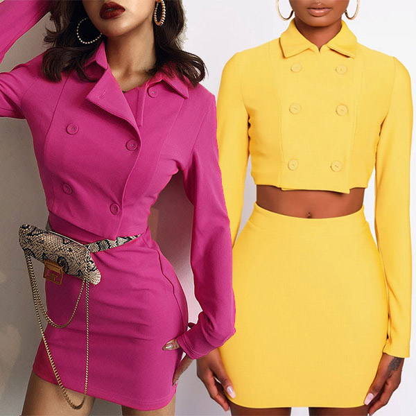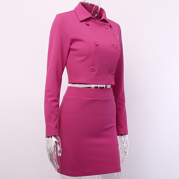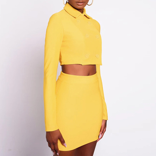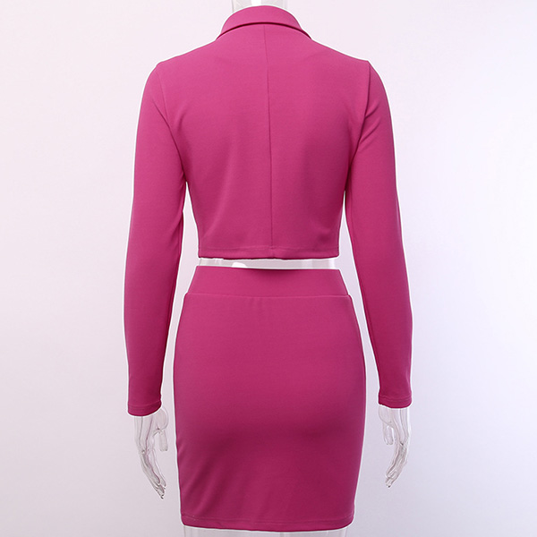 You can easily achieve for a sexy,elegant and charming weekend look when you dress yourself up with this two-piece set. Solid color style,including a long sleeve POLO collar crop top and a high waist skirt,this two-piece set not only can showcase your seductive figure,but also can boost your feminine appeal. So why not boost your charm with this two-piece set?