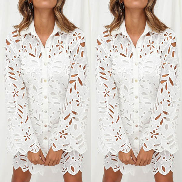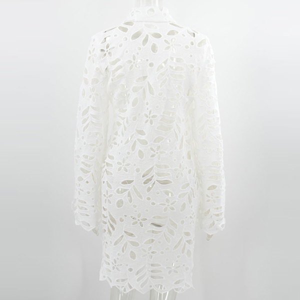 Your charm can have an instant boost when you wear this dress. It is finished with long sleeve,POLO collar and a clean silhouette,this dress can offer you a comfortable day. And the hollow out details will make this piece look more alluring. We suggest you adding a thin waistband to achieve for a charming look.