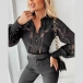 Sexy Long Sleeve POLO Collar See-through Lace Top