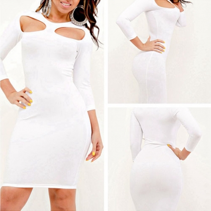 Sexy Long Sleeve Round Neck Hollow Out Bodycon Dress