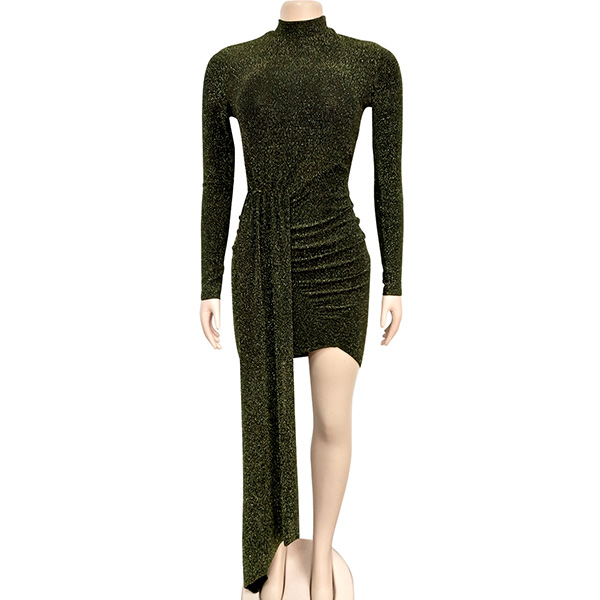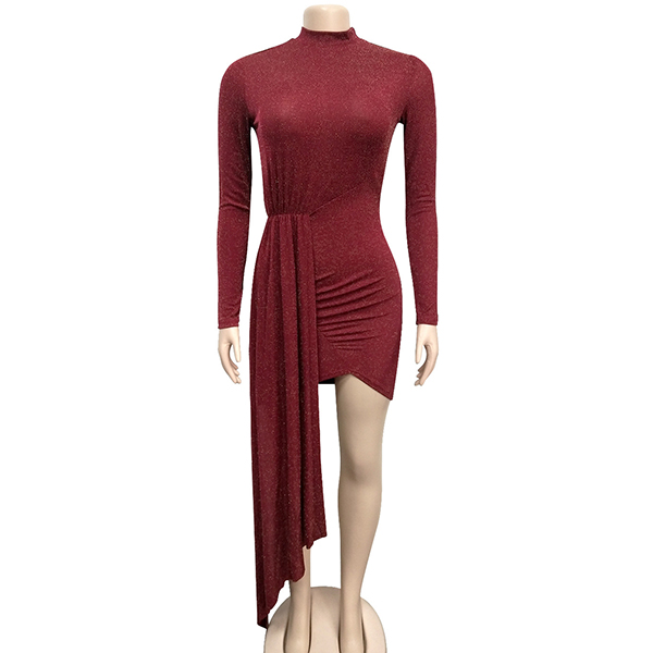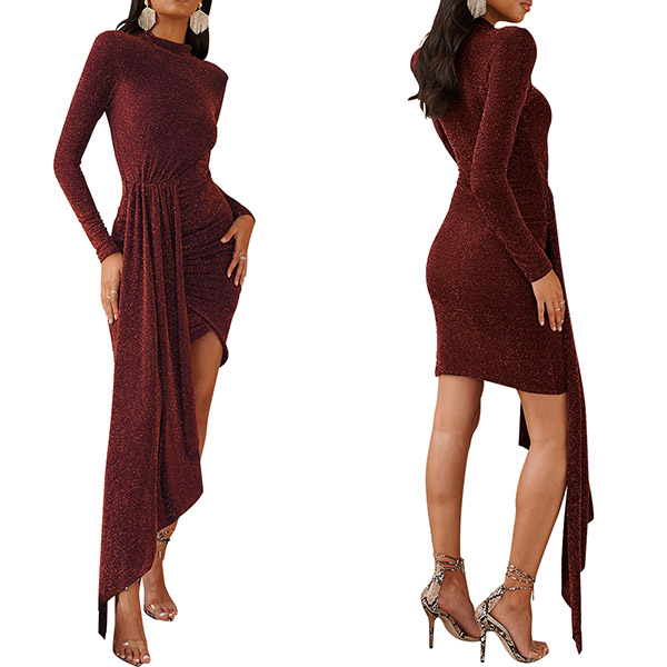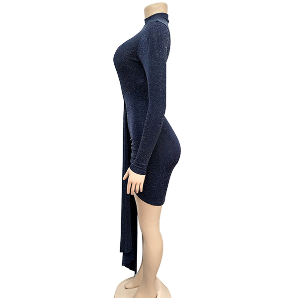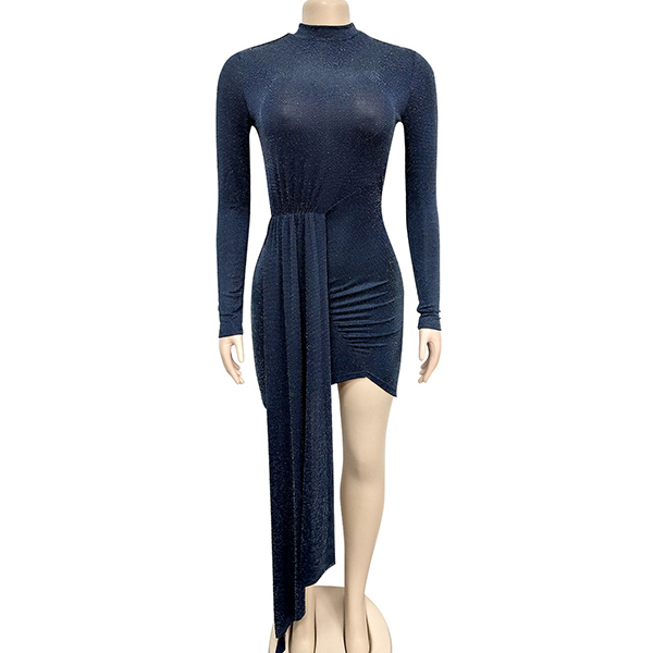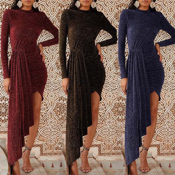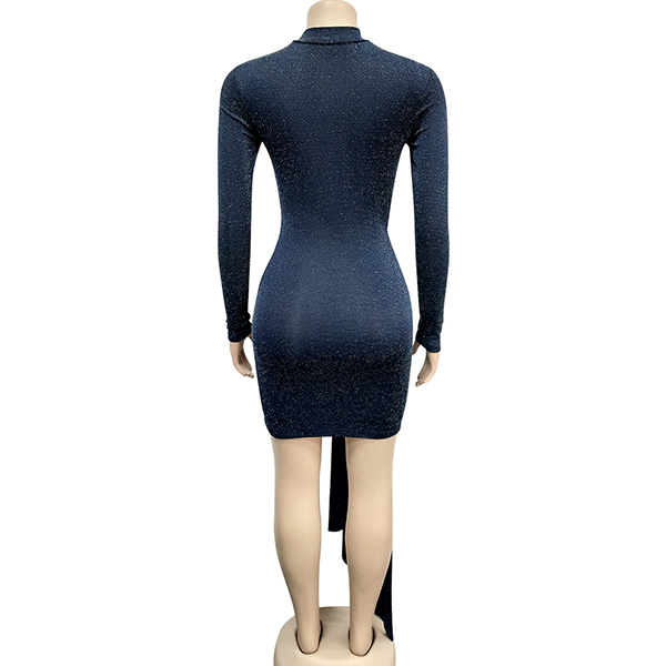 Sexy Long Sleeve Round Neck Irregular Hem Slim Fit Party Dress