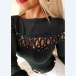 Sexy Long Sleeve Round Neck Rhinestone Spliced Hollow Out T-shirt