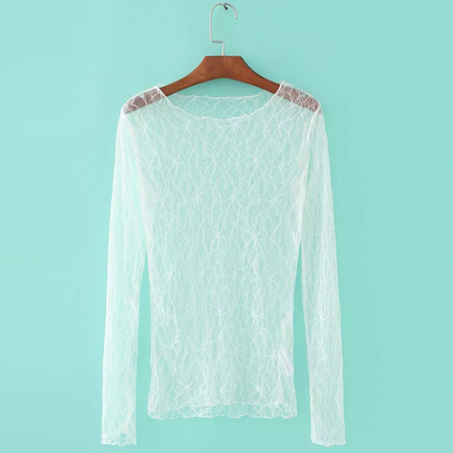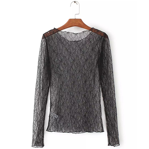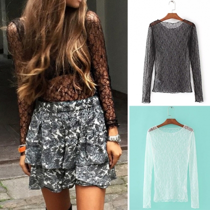 lace t-shirt into your wardrobe? See-through lace style,designed with long sleeve and round neck,this little stunner