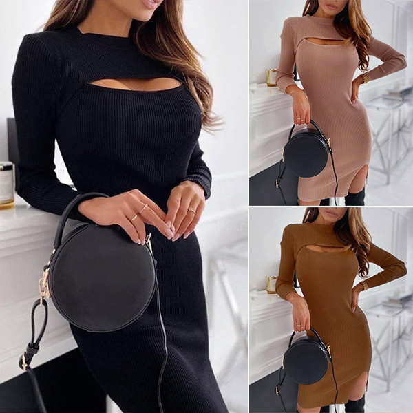 Thanks to the soft and breathable fabric,you can have a comfortable day in this dress. Solid color style,the fit silhouette design will portray your slender figure,while the slit hem and hollow out design will offer you a sexier look. Just dress it up with your sexy heels for a beautiful look.